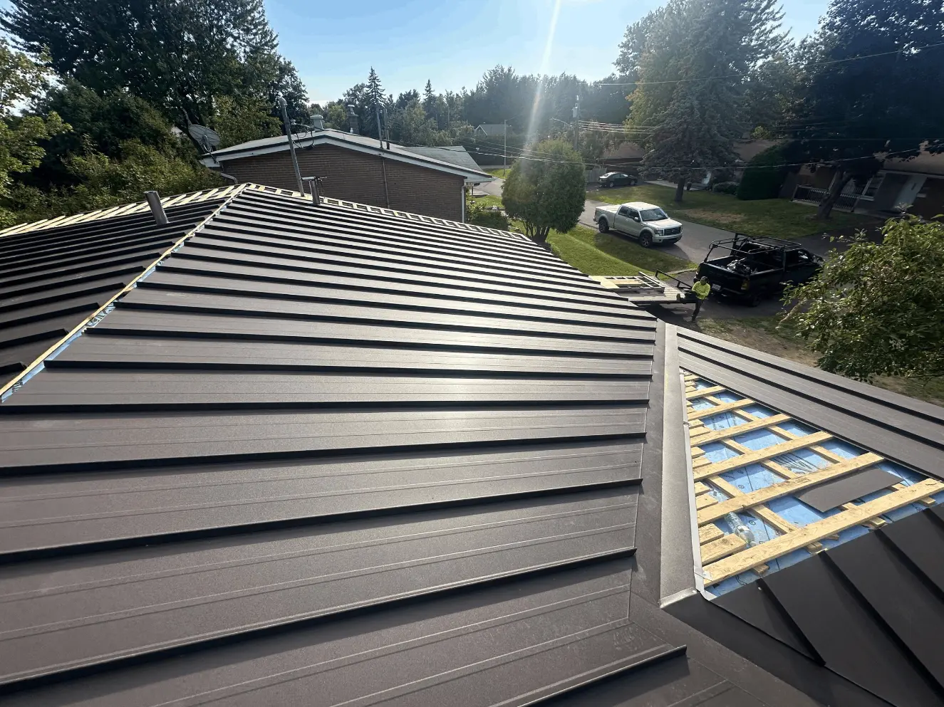 Nos équipes installent des toitures métalliques dans un rayon de 1h30 autour de Montréal. Que vous soyez à Laval, sur la Rive-Sud ou la Rive-Nord, nos couvreurs se déplacent chez vous pour une soumission gratuite.